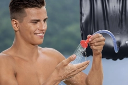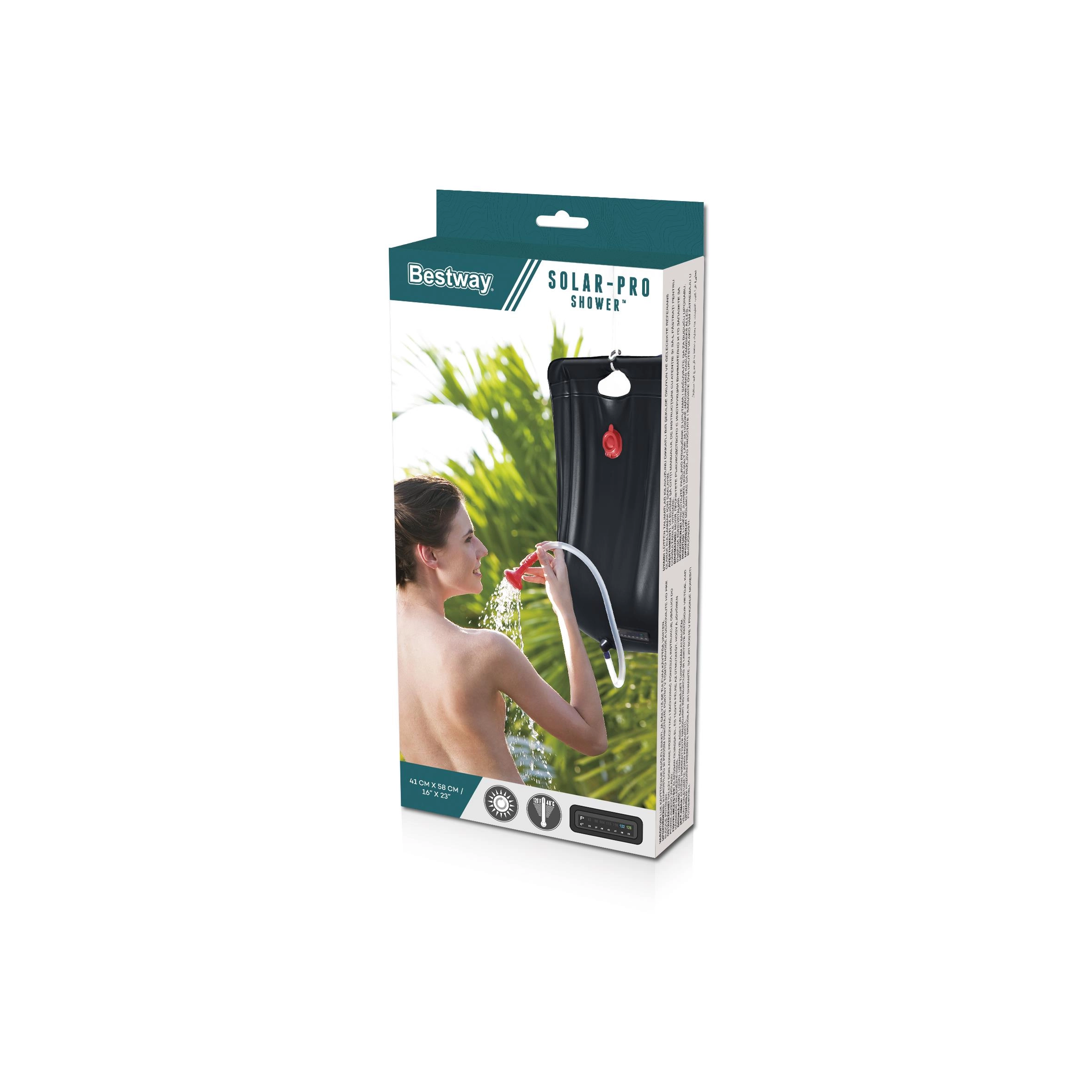 Solárna sprcha Bestway je ideálna na kempovanie, pláž, chatu aj treky bez zázemia. Čierne PVC pohlcuje slnečné lúče a ohrieva vodu na komfortnú teplotu, takže sa môžete osprchovať alebo opláchnuť riad aj v odľahlých miestach. Integrovaný teplomer vám umožní jednoducho kontrolovať pripravenú teplotu.
