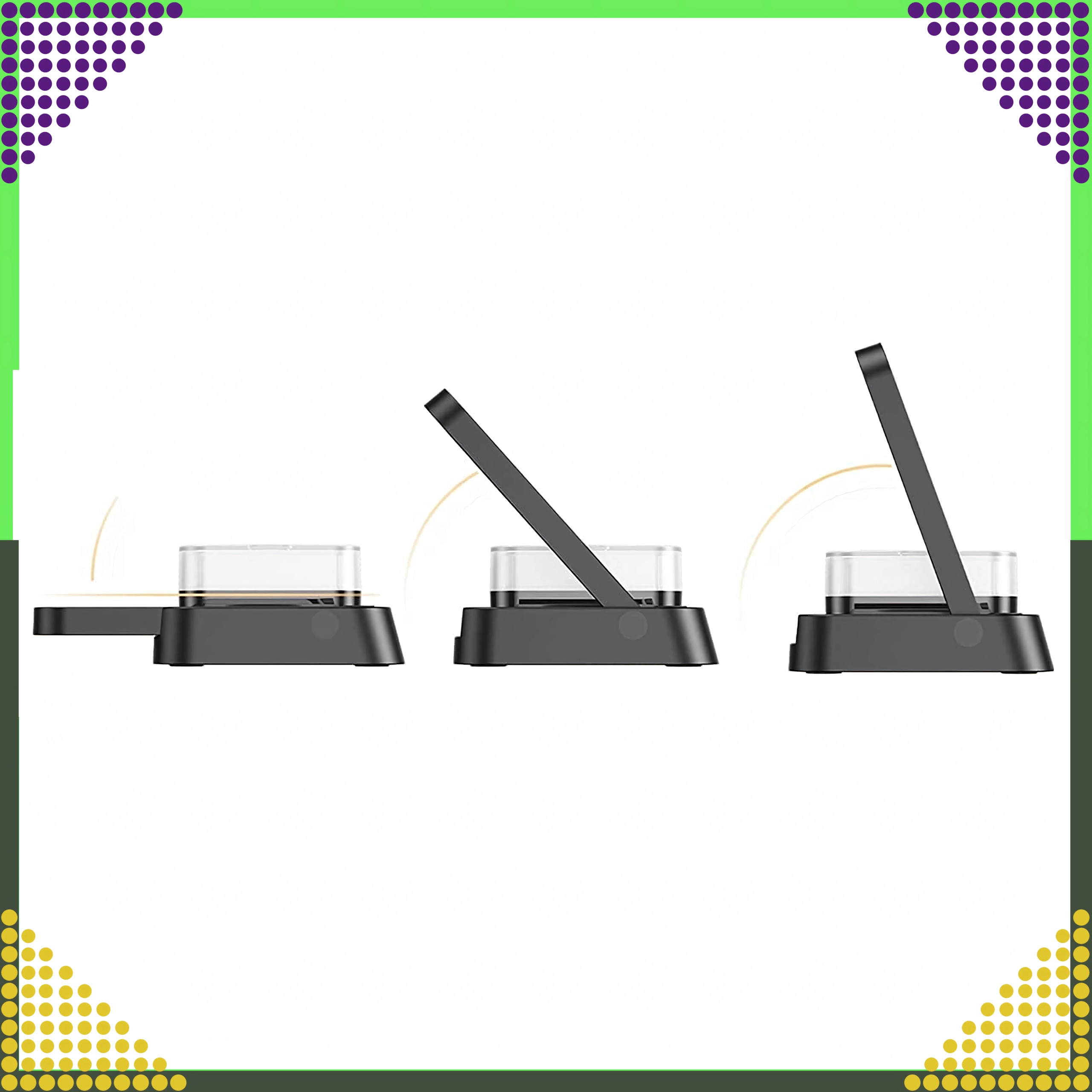 - Skladacia, stojan pre telefón, vyvýšený modul pre hodinky, samostatná podložka pre slúchadlá