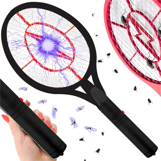 Praktická a účinná elektrická plácačka na muchy a komáre s rozmermi 52 × 22 cm spoľahlivo likviduje muchy, komáre a ďalší hmyz jediným mávnutím. Funguje bez chémie, je tichá, ľahká a ľahko ovládateľná – ideálna do domácnosti, na záhradu aj na cesty.