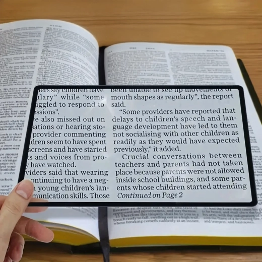 Praktická stránková lupa s flexibilným plastovým šošovkovým listom zväčší text aj detaily až o 200 %. Vďaka tenkému prevedeniu s ľahkým rámom sa pohodlne drží, môžete ju položiť priamo na stránku a čítať bez namáhania očí.