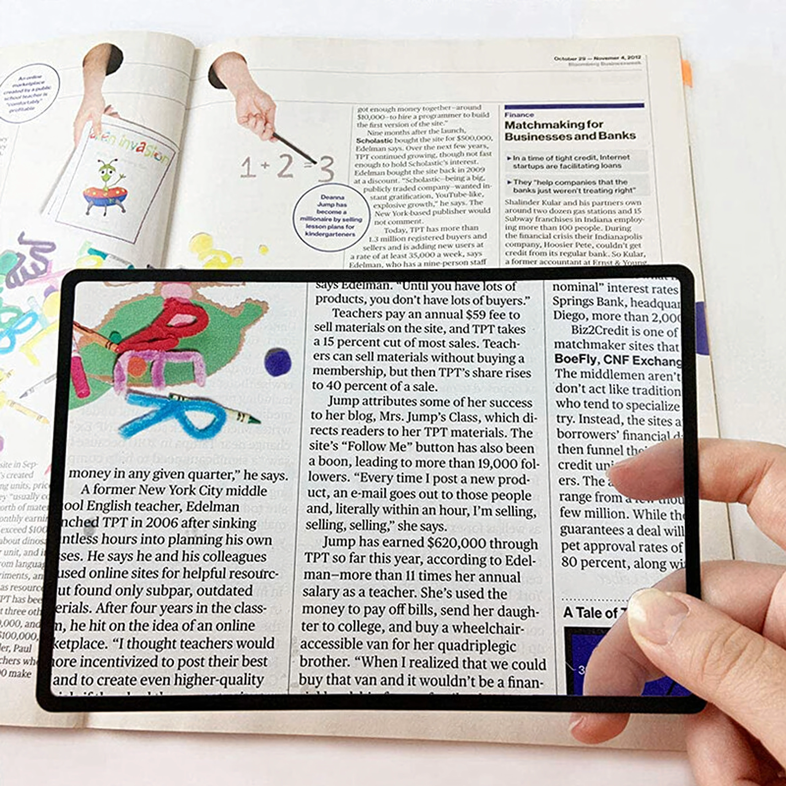 Obdĺžniková šošovka pokryje veľkú časť stránky, takže text vidíte zväčšený bez neustáleho posúvania lupy.