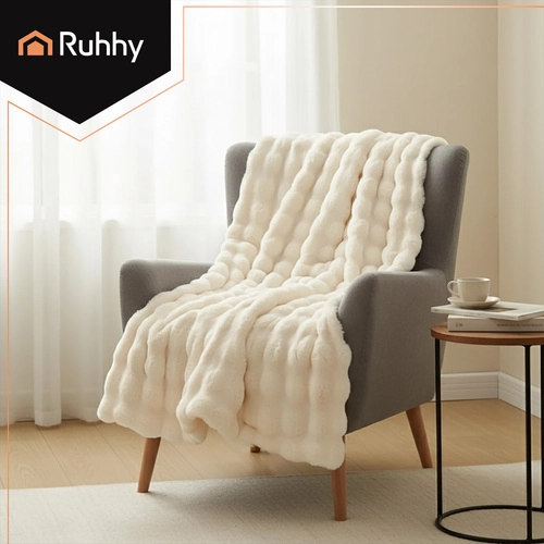 Užite si okamžité pohodlie s mäkkým a hebkým plédom RUHHY v univerzálnej bielej. Je ľahký, hrejivý a mimoriadne príjemný na dotyk. Vďaka dvojvrstvovej konštrukcii – vrchná strana ako králičia kožušinka a spodná jemný plyš – poskytuje maximálny komfort. Jednoduchá údržba v práčke na 30 °C, odolnosť proti žmolkovaniu a štýlový vzhľad z neho robia ideálny doplnok do spálne aj obývačky.
