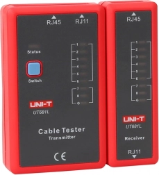 UNI-T UT681L je praktický tester na rýchlu diagnostiku ethernetových aj telefónnych vedení. Podporuje konektory RJ45 a RJ11 a vďaka LED diódam (LED1–LED8, LED_G) okamžite zobrazí stav každého vodiča vrátane tienenia. Vybrať si môžete rýchly alebo pomalý režim testovania podľa potreby.