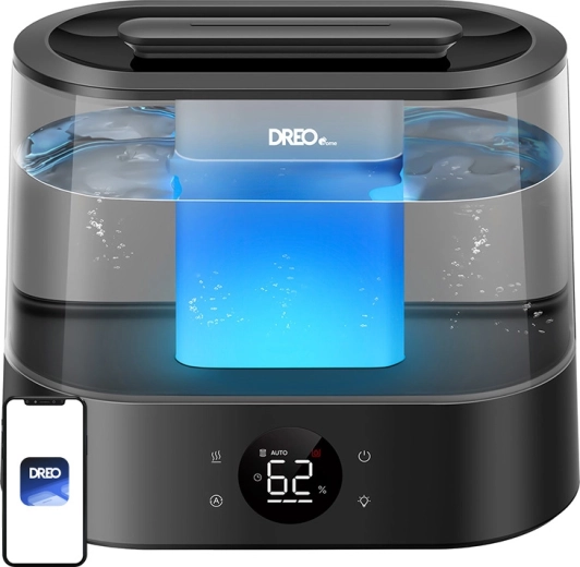 Zariadenie možno ovládať cez mobilnú aplikáciu DREO aj hlasom, nastaviť plán, meniť režimy a sledovať vlhkosť v reálnom čase. Horné plnenie uľahčuje údržbu, špeciálne ochranné prvky bránia poškodeniu elektronikou vlhkosťou a konštrukcia proti úniku chráni vašu domácnosť.