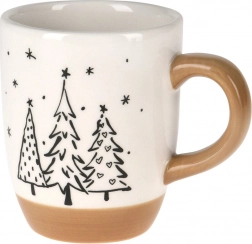 Vneste do svojho domova sviatočnú atmosféru s elegantným keramickým hrnčekom zdobeným minimalistickými stromčekmi. Kombinácia bielej glazúry s béžovým uchom a podstavou pôsobí vkusne a nadčasovo, takže sa hrnček hodí k akémukoľvek prestieraniu.