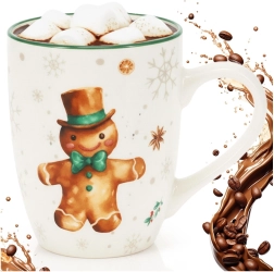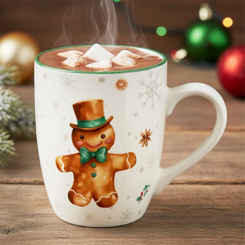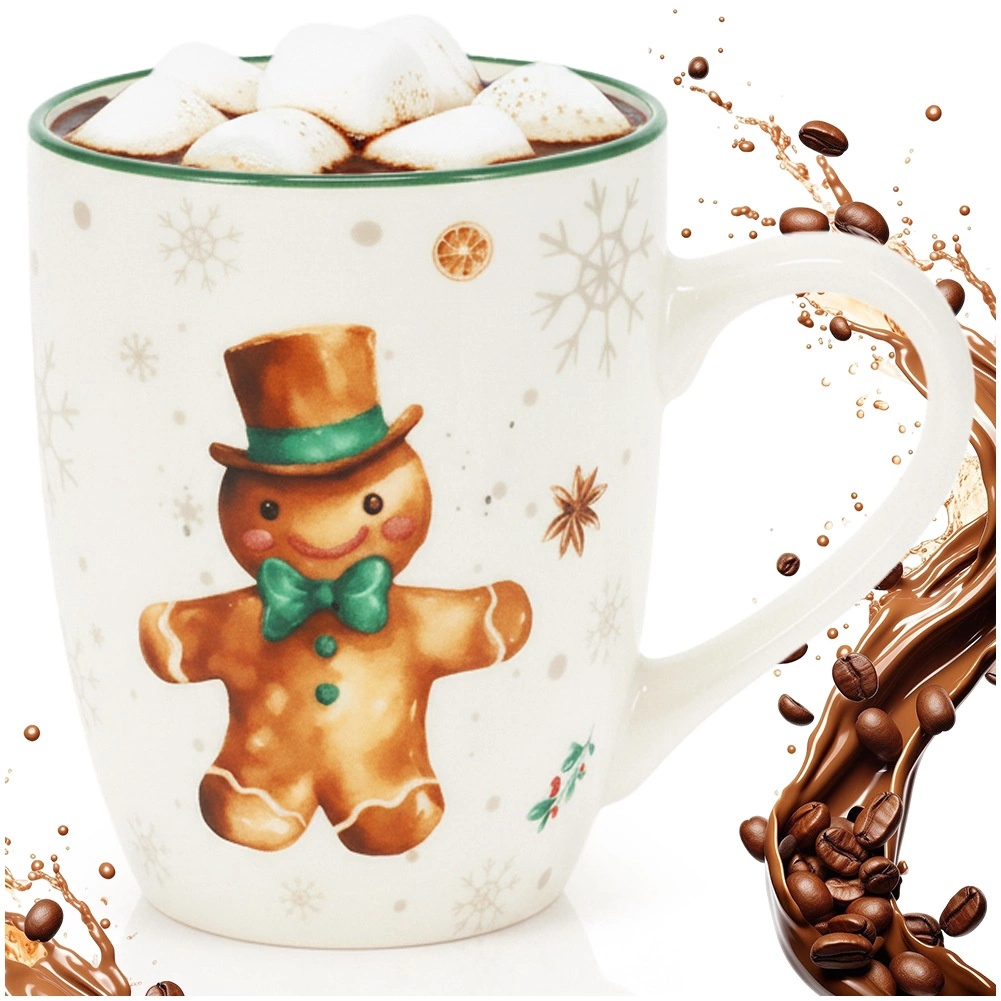 Užite si zimnú pohodu s týmto porcelánovým hrnčekom s motívom perníkového panáčika. Má objem 320 ml, pohodlné ucho na jednoduché držanie a elegantný zelený okraj. Je vhodný do umývačky riadu aj mikrovlnky a skvele sa hodí na kávu, čaj aj horúcu čokoládu.
