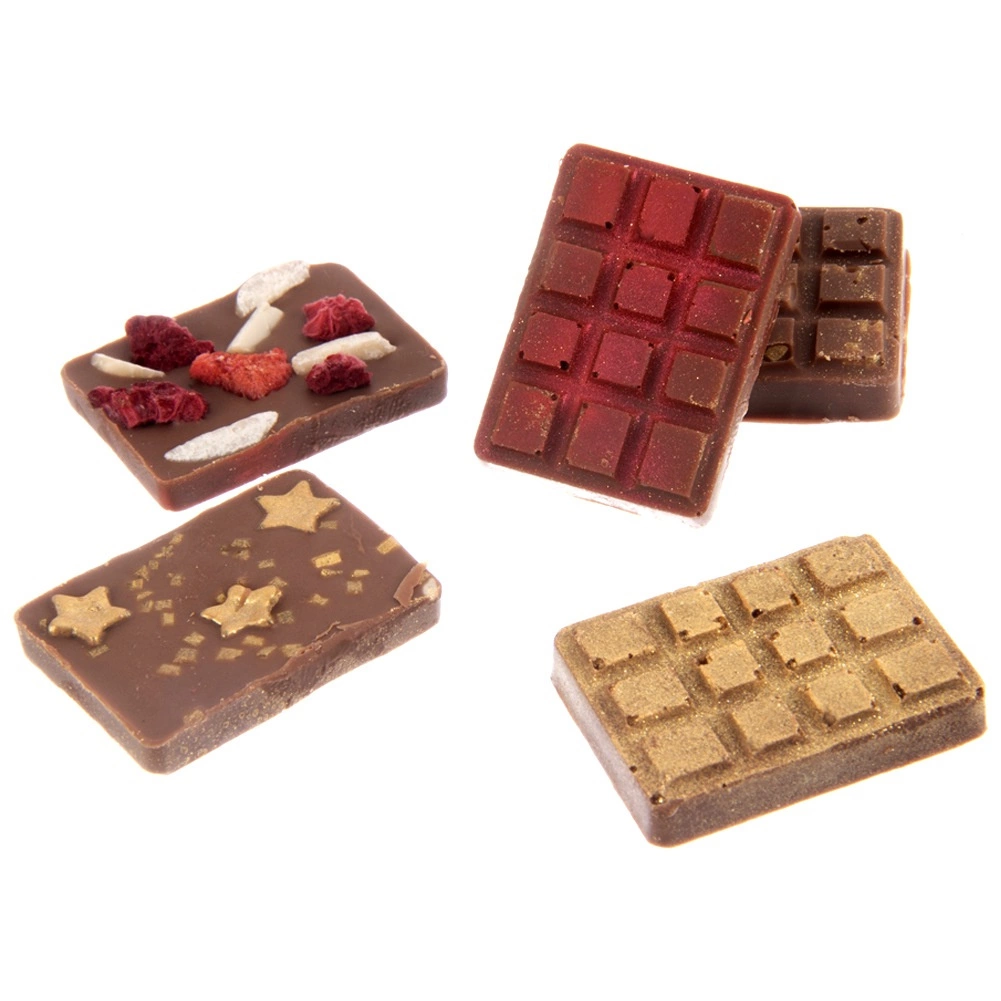 Forma ponúka chytré členenie: odleje jednu veľkú tabuľku a päť mini tabuľiek na degustáciu, darčeky alebo desiaty.