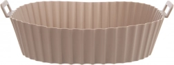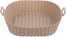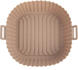 Béžový silikónový vložný kôš do Air Fryer s rozmermi 22 × 22 × 7 cm (dno 18 × 18 cm) chráni vnútro fritézy pred zvyškami jedla a zjednodušuje údržbu. Nepriľnavý povrch bráni pripaľovaniu a vďaka integrovaným úchytom sa vložka ľahko vkladá a vyberá.