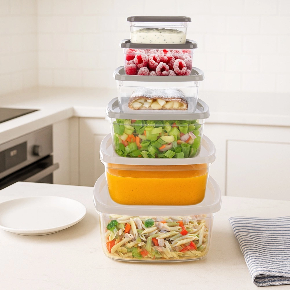 Dózy sú bezpečné pre potraviny, odolné voči nízkym aj vysokým teplotám a možno ich umývať v umývačke. Hodia sa do chladničky aj mrazničky (−25 °C až +95 °C). Vďaka stohovateľnému a vkladaciemu dizajnu šetria miesto v kuchynskej skrinke a pomôžu udržať poriadok a organizáciu v každej domácnosti.