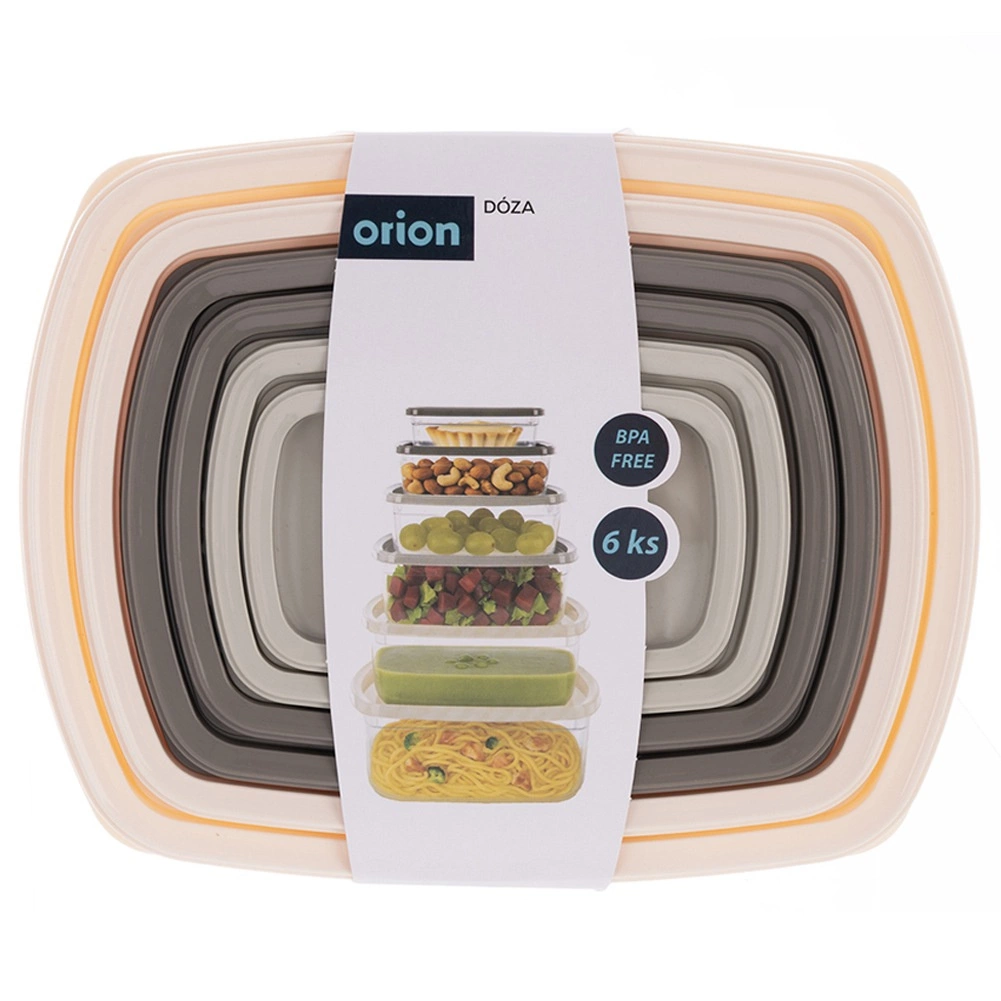Urobte poriadok v kuchyni aj chladničke. Sada ORION obsahuje 6 priehľadných dóz s viečkami v troch neutrálnych farbách na univerzálne použitie – od cestovín a sypkých potravín až po šaláty, ovocie či zvyšky jedál. Priehľadné steny umožňujú rýchlu kontrolu obsahu bez otvárania a presne padnúce viečka zabezpečujú spoľahlivé tesnenie.