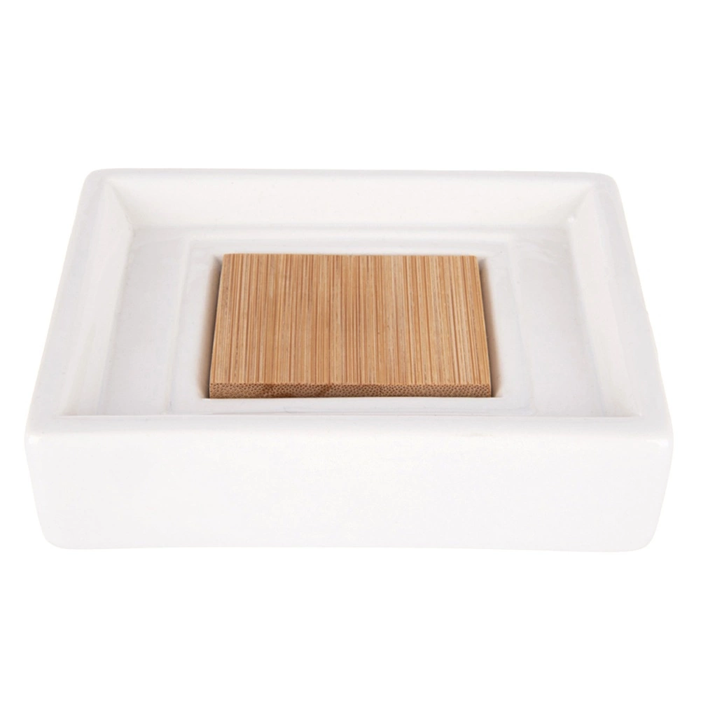 Vyvýšená bambusová vložka pomáha odvádzať vodu, predlžuje životnosť mydla a udržiava čistotu pri umývadle.
