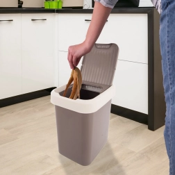 Praktický a štýlový odpadkový kôš s objemom 12 l je ideálny na každodenné triedenie drobných odpadkov v domácnosti aj kancelárii. Vďaka kompaktným rozmerom 27 × 22 × 31 cm ho ľahko umiestnite na podlahu, na kuchynskú linku alebo do skrinky. Hladký plastový povrch v hnedo-krémovej kombinácii sa dobre udržiava a ladí s väčšinou interiérov.