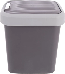 Kompaktný odpadkový kôš s objemom 12 l v elegantnej sivej farbe s praktickým výklopným vekom pre pohodlné vyhadzovanie odpadu. Vďaka odolnému plastu, ľahkému čisteniu a možnosti zablokovania veka v otvorenej polohe je ideálny do kuchyne, kúpeľne, kancelárie aj čakární. Udrží pachy pod kontrolou a svojím univerzálnym dizajnom zapadne do každého interiéru.