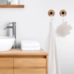 Sada 2 samolepiacich háčikov je chytré riešenie pre prehľadné uloženie uterákov, županov, utierok, tašiek aj doplnkov. Prírodný bambus v kombinácii s čiernym kovom vytvára nadčasový, minimalistický akcent, ktorý zapadne do moderných aj škandinávskych interiérov. Inštalácia bez náradia šetrí čas, steny aj obklady.