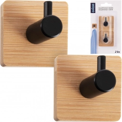 Praktická sada dvoch nástenných háčikov kombinuje bambusové drevo a matný čierny kov pre elegantné a odolné riešenie organizácie. Samolepiaca montáž bez vŕtania umožní rýchle pripevnenie v kúpeľni, kuchyni či predsieni. Kompaktný rozmer 4,5 × 4,5 cm je ideálny na uteráky, oblečenie alebo tašky.