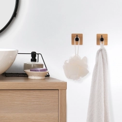 Štýlové háčiky s bambusovou základňou a čiernym kovovým čapom sú navrhnuté pre každodenné pohodlie. Vďaka samolepiacej zadnej strane je inštalácia rýchla a čistá – bez vŕtania, prachu a náradia. Minimalistický dizajn skvele zapadne do moderných interiérov aj prírodne ladených priestorov.