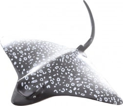 Detailný tvar krídel, kontrastné škvrny a dlhý chvost prinášajú verný vzhľad manty, ktorý podnecuje detskú predstavivosť.