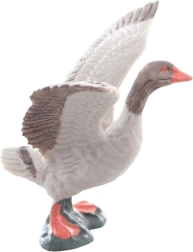 Táto starostlivo tvarovaná plastová husa so sivobielym perím, hnedými koncami krídel a oranžovým zobákom aj nohami je ideálna na imaginatívnu hru, vzdelávacie aktivity aj dekorácie a diorámy. Stabilný podstavec udrží figúrku bezpečne stáť na mieste.