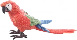 Verné spracovanie peria, jasné červené sfarbenie s modro‑zelenými akcentmi a charakteristický tvar zobáka pre autentický vzhľad ary.