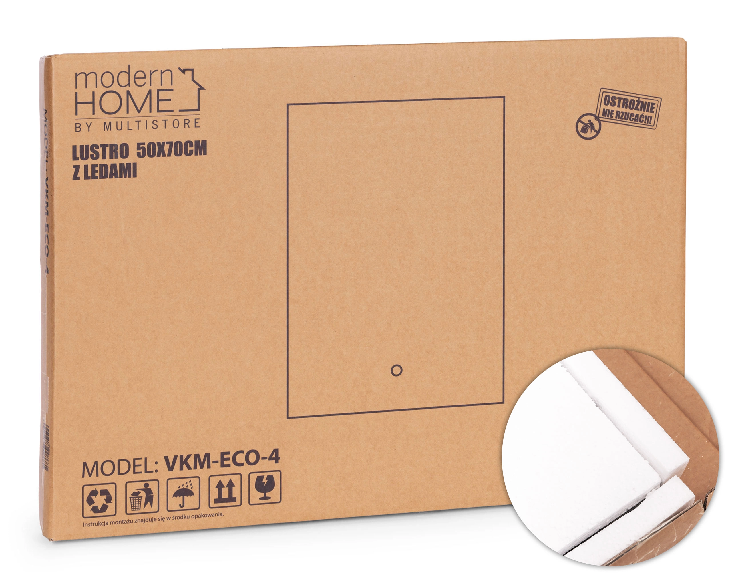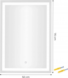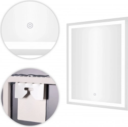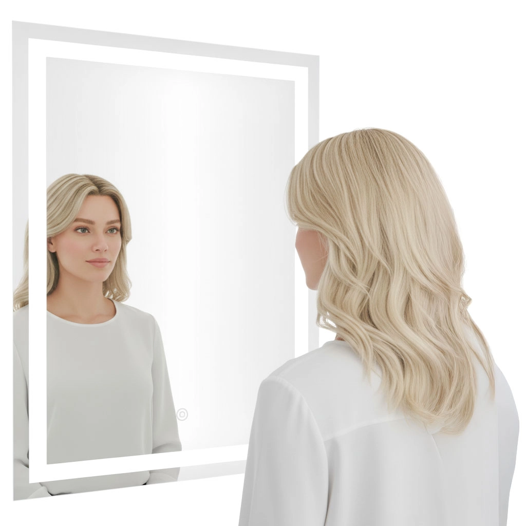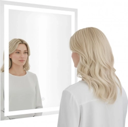 Elegantné LED zrkadlo MODERNHOME s rozmermi 50 × 70 cm s podsvieteným rámom, dotykovým ovládaním a tromi teplotami svetla (teplá, neutrálna, studená). Poskytuje rovnomerné osvetlenie na líčenie aj holenie, hodí sa do moderných aj klasických interiérov a zabezpečuje pohodlné každodenné používanie.