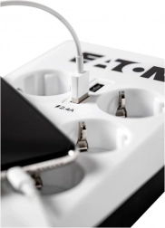 EATON Protection Box 6 USB je špičková prepäťová predlžovačka navrhnutá na ochranu počítačov, TV, Hi‑Fi, herných konzol, sieťových prvkov a ďalšej citlivej elektroniky. Vďaka pokročilej konštrukcii spĺňajúcej normu IEC 61643-11 účinne filtruje špičky napätia, rušenie a nepriamé účinky blesku. Stav ochrany máte pod kontrolou vďaka indikátoru Protection OK.