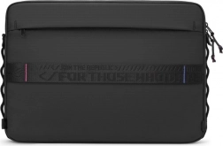 ROG Slash Sleeve 4.0 kombinuje minimalistický čierny dizajn s maximálnou funkčnosťou. Vďaka pevnému polstrovaniu a odolným materiálom chráni notebook pred poškrabaním aj drobnými nárazmi, zatiaľ čo vodoodpudivá úprava pomáha proti ľahkej vlhkosti. Štíhle vyhotovenie uľahčuje nosenie v ruke aj zasunutie do batohu.