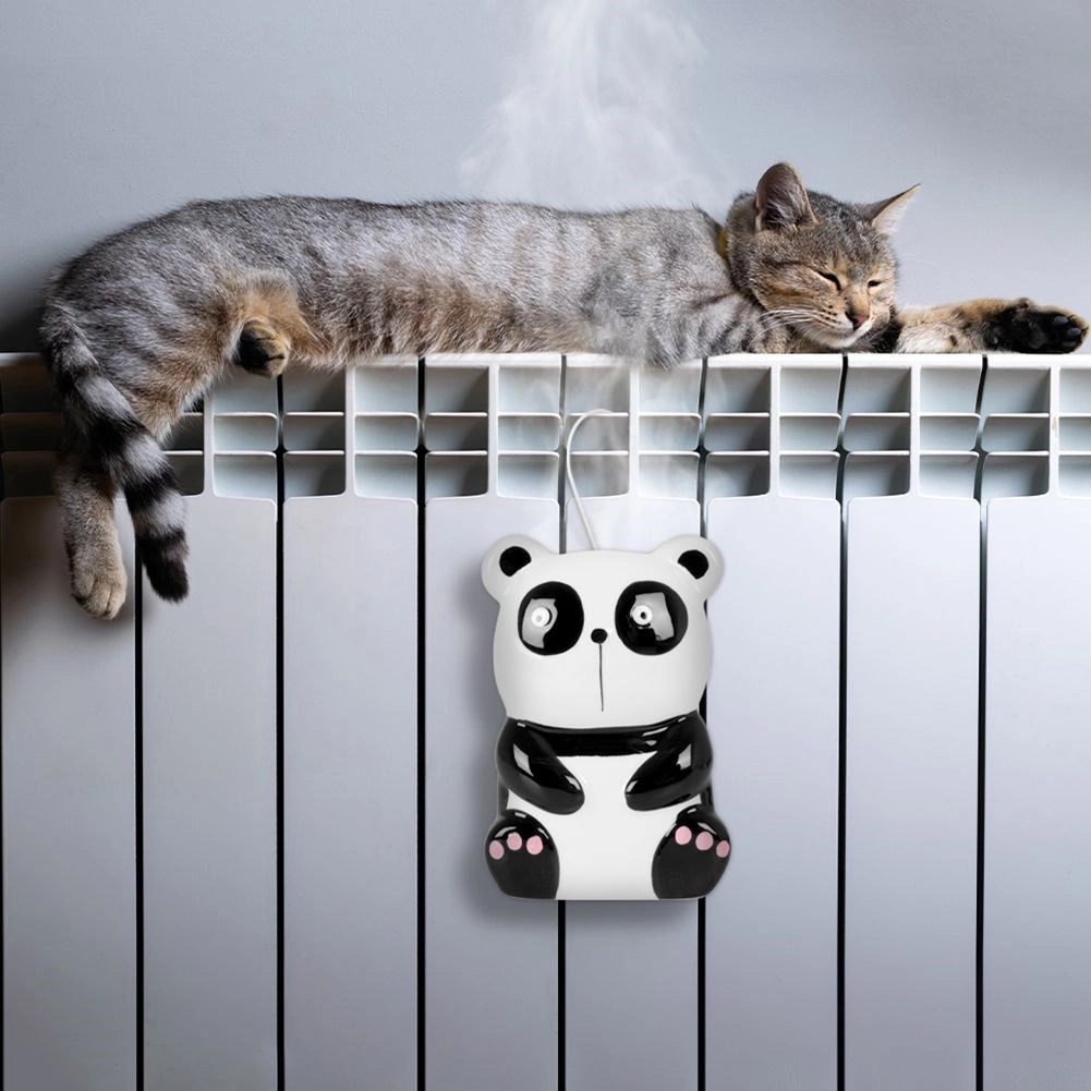 Elegantný a hravý doplnok do interiéru, ktorý prirodzene zlepšuje klímu v miestnosti. Keramický zvlhčovač v tvare pandy zavesíte na radiátor pomocou kovového háčika a naplníte vodou. Akonáhle sa radiátor zahreje, voda sa začne jemne odparovať a zvýši sa vlhkosť vzduchu, čo pomáha proti suchému nosu, podráždenej pokožke aj unaveným očiam.
