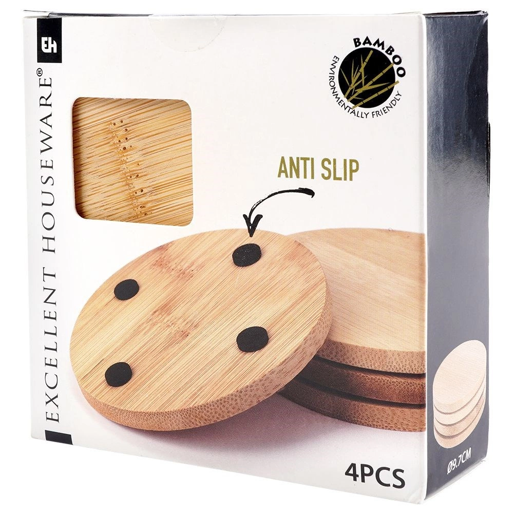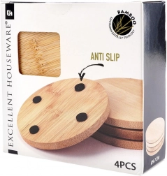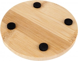 Každá podložka má priemer 9,7 cm a výšku 0,7 cm, čo je ideálna veľkosť pre hrnčeky, poháre aj šálky. Spodné plstené nožičky bránia kĺzaniu a chránia nábytok pred poškrabaním. Bambusové drevo je ľahké, pevné, rýchlo schne, nepohlcuje pachy a dlhodobo si zachováva prirodzenú krásu. Údržba je jednoduchá – stačí utrieť vlhkou handričkou. Neodporúča sa umývanie v umývačke.
