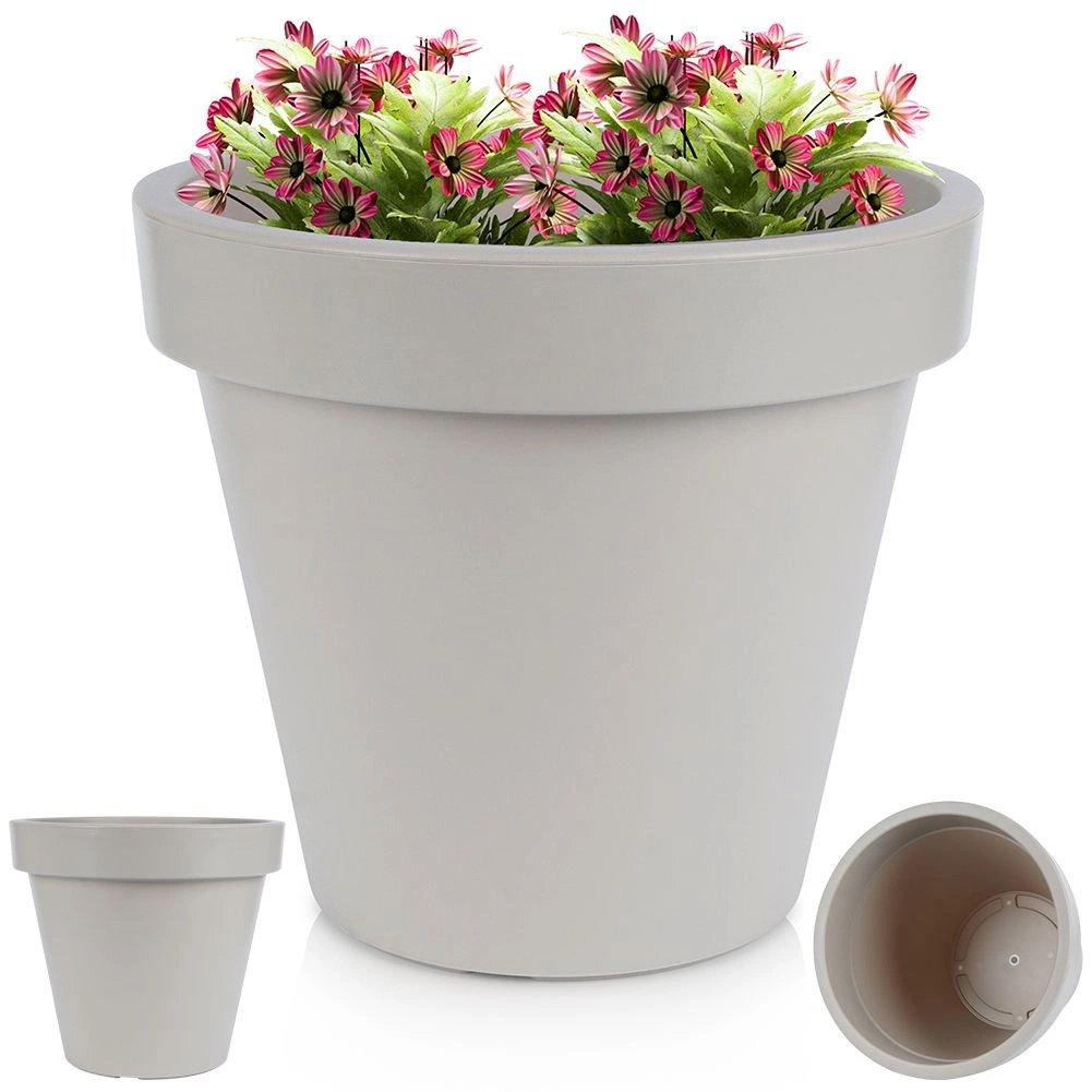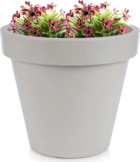 Praktický a štýlový kvetináč s klasickým tvarom a širokým okrajom sa skvele hodí na výsadbu okrasných rastlín, kvetov aj byliniek. Vďaka nízkej hmotnosti sa s ním ľahko manipuluje, napriek tomu je vyrobený z pevného plastu, ktorý odolá každodennému používaniu aj premenlivému počasiu.