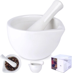 Tento biely porcelánový mažiar je ideálnou voľbou pre domácich kuchárov aj milovníkov gastronómie, ktorí chcú z korenín a byliniek získať maximum chuti a vône. Vďaka neleštenému vnútornému povrchu efektívne drví aj tvrdšie suroviny a umožní pripraviť čerstvé pesto, aromatické zmesi či domáce karí.