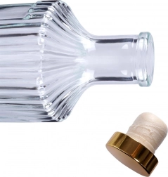 - Číre sklo, korok/kov (uzáver so zlatou povrchovou úpravou)