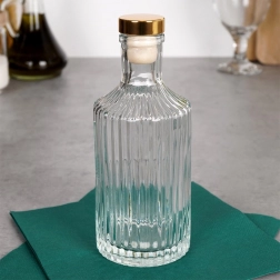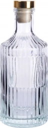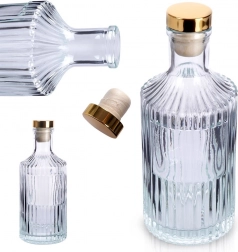 Štýlová fľaša z číreho skla s moderným rebrovaným dizajnom a ozdobným zlatým korkom sa hodí na servírovanie aj skladovanie nápojov. Kompaktné rozmery uľahčujú manipuláciu i miesto v chladničke či na poličke. Fľaša je ľahko umývateľná a vhodná na každodenné použitie v domácnosti aj gastronómii.