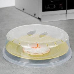 Udržujte mikrovlnku dokonale čistú a ohrievajte jedlo bezpečnejšie. Kryt do mikrovlnnej rúry s priemerom 24 cm a výškou 7 cm zabraňuje rozstreku omáčok a tukov, pričom prepúšťa dostatok pary vďaka integrovaným otvorom. Priehľadný materiál vám umožní sledovať stav ohrevu bez dvíhania krytu.