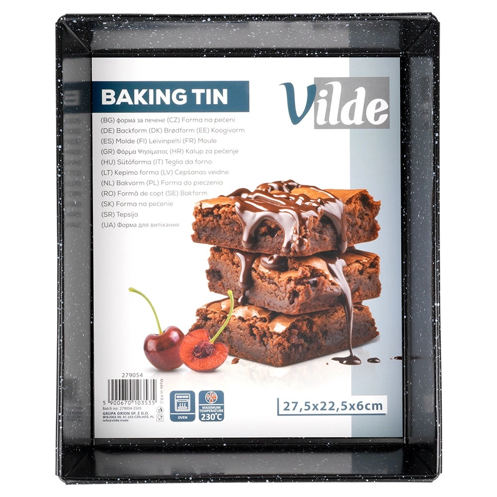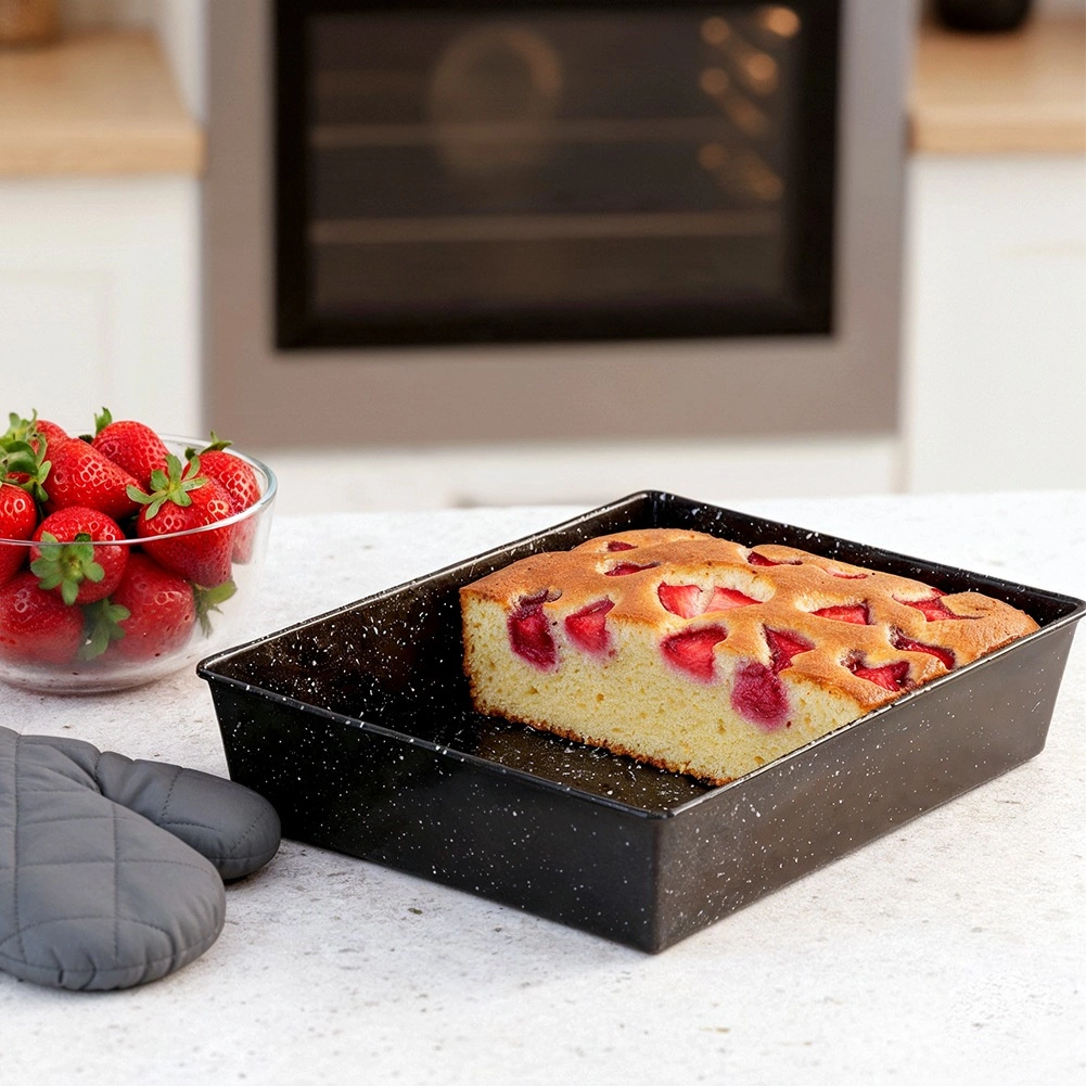 Praktická obdĺžniková forma s rozmermi 27,5 × 22,5 × 6 cm je skvelou voľbou na každodenné pečenie aj sviatočné menu. Uhlíková oceľ výborne vedie teplo, čo zaručuje rovnomerné prepečenie a spoľahlivé výsledky pri sladkých aj slaných jedlách.