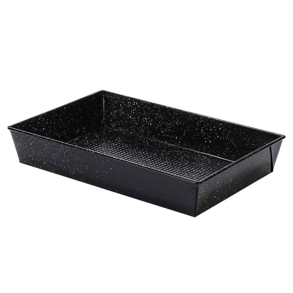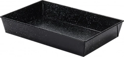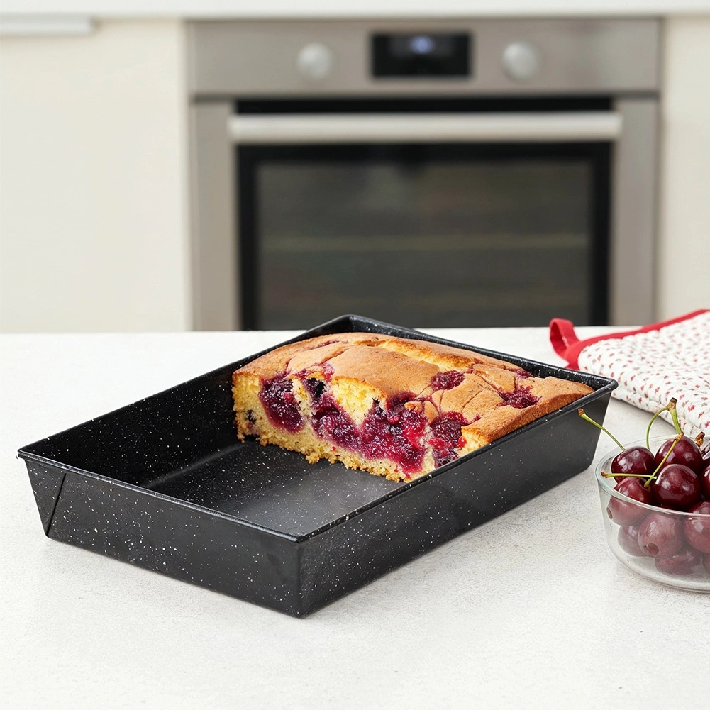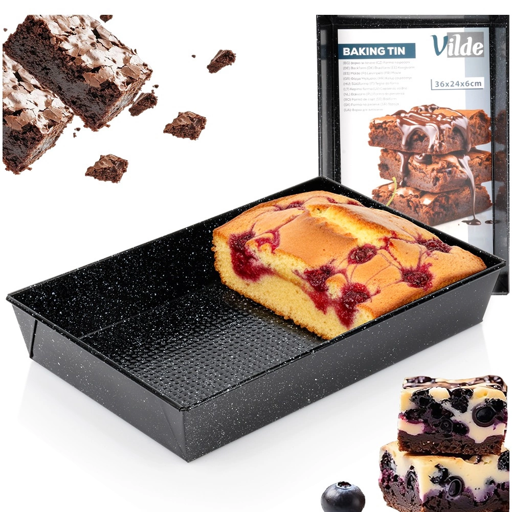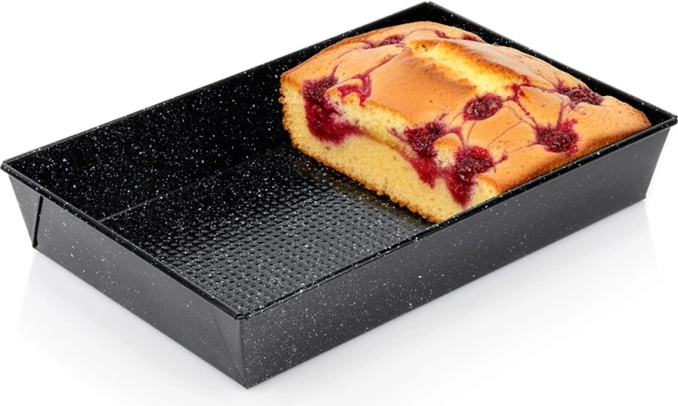 Praktická obdĺžniková forma na pečenie s rozmermi 36 × 24 × 6 cm z kvalitnej uhlíkovej ocele s granitovou, nepriľnavou povrchovou úpravou. Zabezpečuje rovnomerné vedenie tepla a jednoduché vyberanie jedál. Ideálna na koláče, sekanú, zapekanie aj zeleninu. Odolná voči teplotám až 230 °C v plynovej aj elektrickej rúre.