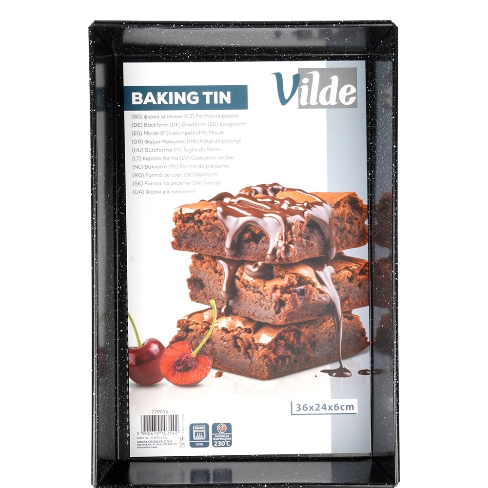 Rozmer 36 × 24 × 6 cm je perfektný pre rodinné dezerty, slané nákypy aj pečenie mäsa a zeleniny. Forma je bezpečná pre potraviny a vhodná do plynovej aj elektrickej rúry do 230 °C. Originálny produkt značky VILDE, vyrobený podľa európskych štandardov.