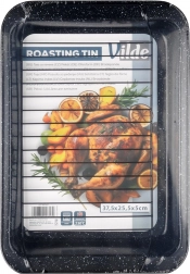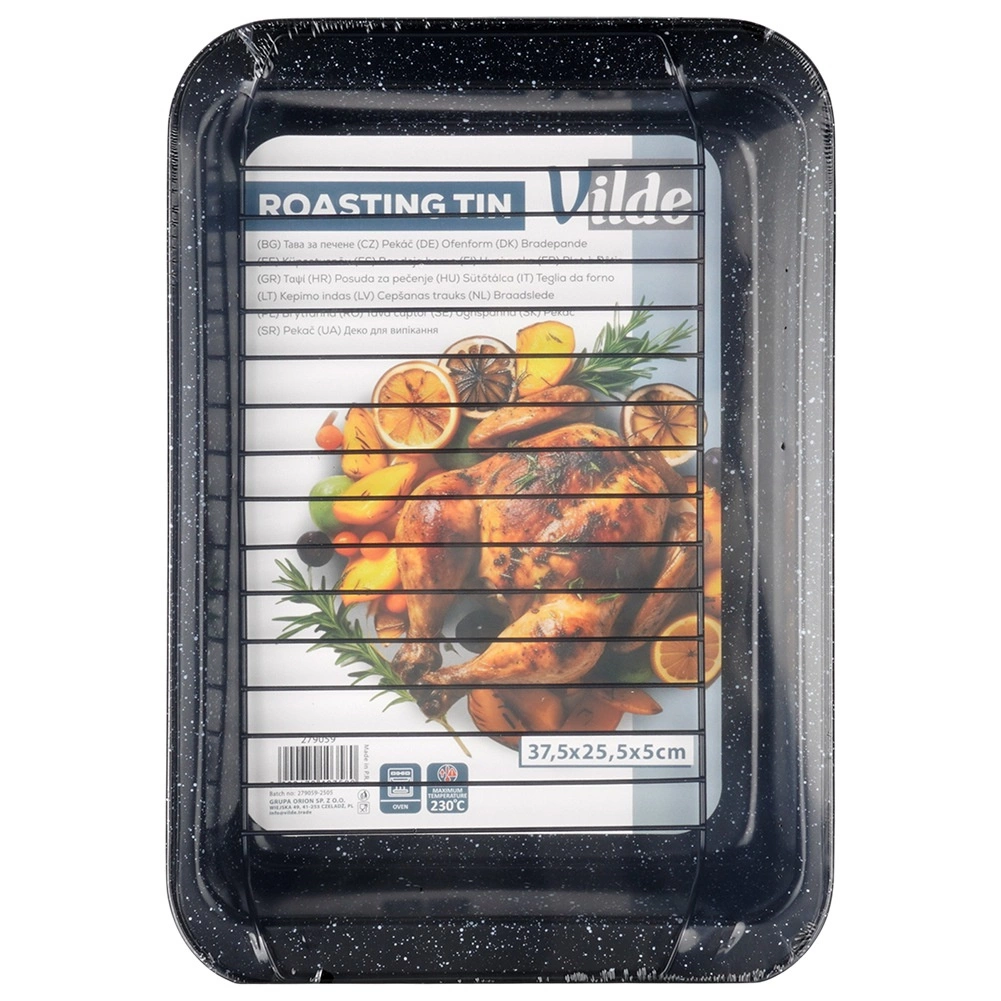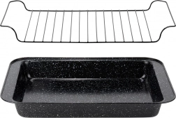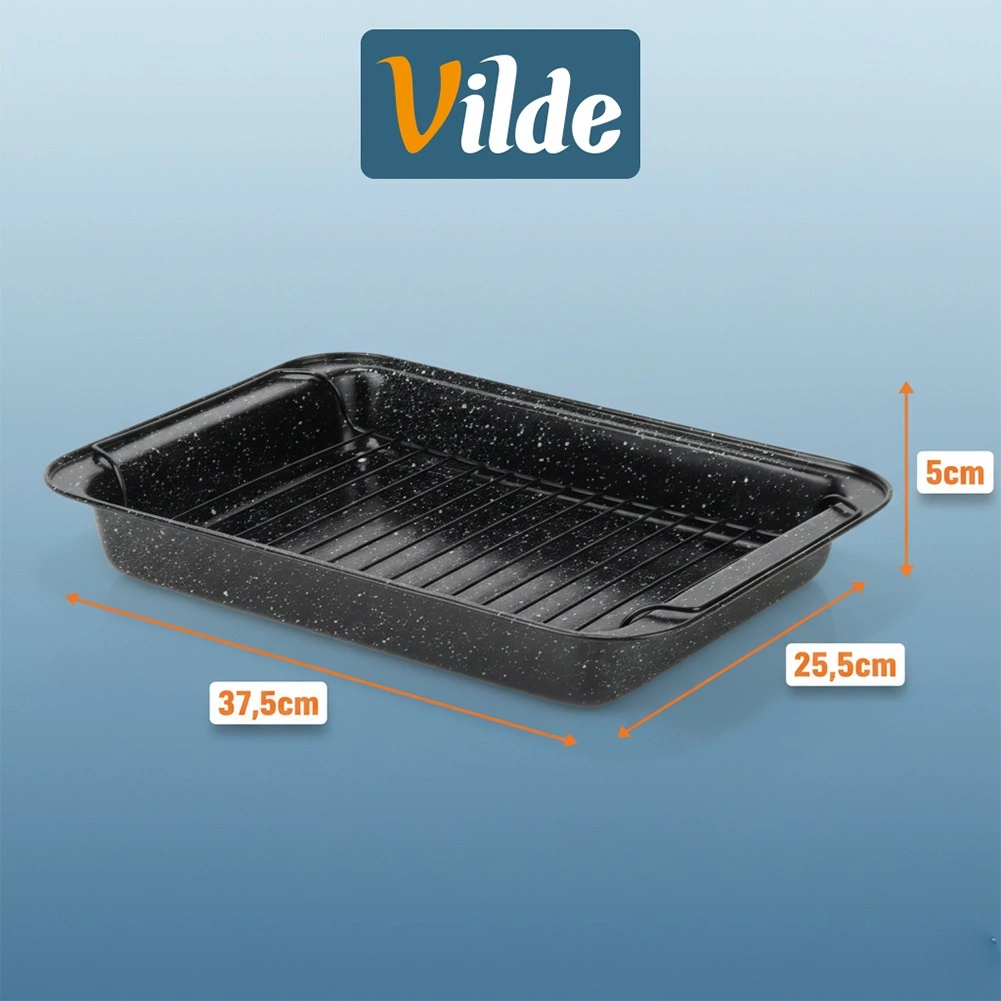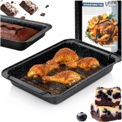 Kvalitná oceľ zabezpečuje stabilitu a rovnomerné rozloženie tepla. Rozmery 37,5 × 25,5 × 5 cm sú ideálne na pečenie mäsa, hydiny aj zapekaných jedál.