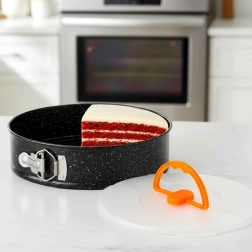 Bočný prstenec s kovovou sponou sa rýchlo uvoľní, takže tortu či cheesecake vyberiete bez porušenia okrajov a s perfektne hladkými stenami.