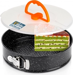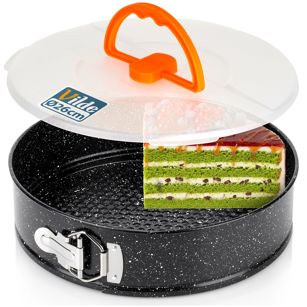 Vďaka rozpínaciemu okraju a vyberaciemu dnu vyberiete hotový dezert bez poškodenia tvaru. Súčasťou je priehľadné veko s pevným uchom na bezpečné skladovanie v chladničke aj pohodlný transport – koláč zostane chránený a nevysychá.