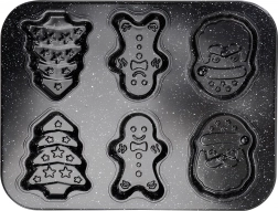 Forma ponúka šesť hlbokých dutín v troch obľúbených sviatočných motívoch – Santa, vianočný stromček a perníková postavička. Skvele sa hodí na perníky, linecké, krehké sušienky, mini bábovky aj malé cheesecaky.