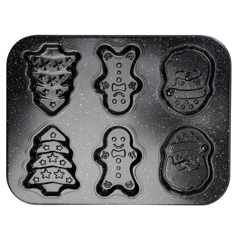 Upečte naraz šesť detailných sušienok alebo mini báboviek v tvaroch Santa, stromčeka a perníkovej postavičky – ideálne na vianočné pečenie aj darčeky.