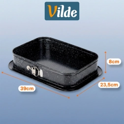 Rozmery: vnútorné 35 × 24 × 6,5 cm; vonkajšie 39 × 27,5 × 8,5 cm. Kvalitné spracovanie pre dlhú životnosť a pohodlné pečenie doma aj pri slávnostných príležitostiach.