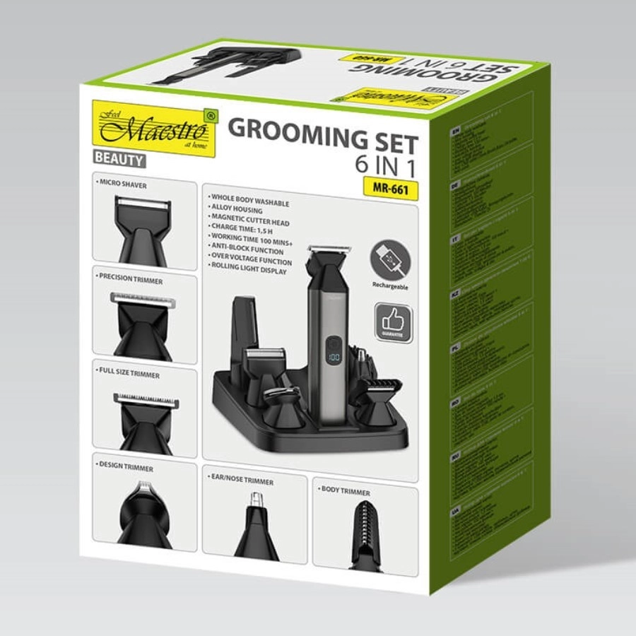 - 6 v 1 multifunkcia – nadstavce na strihanie vlasov, úpravu fúzov a detaily.