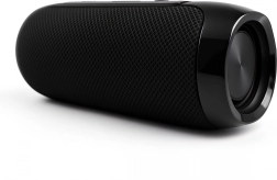 Robustná valcová konštrukcia s pasívnymi žiaričmi zdôrazní basy a pritom zostáva ľahko prenosná. Nabíjanie cez USB‑C je rýchle a pohodlné, takže môžete hudbu vziať kamkoľvek – od pláže, cez kemp až po balkónové posedenie.