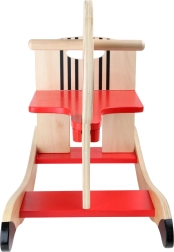 Hojdanie prirodzene rozvíja hrubú motoriku, posilňuje stabilitu trupu a podporuje koordináciu a zmysel pre rovnováhu. Elegantné prírodné drevo s červenými akcentmi skvele zapadne do detskej izby. Výrobok si vyžaduje jednoduchú montáž – súčasťou je obrázkový návod.
