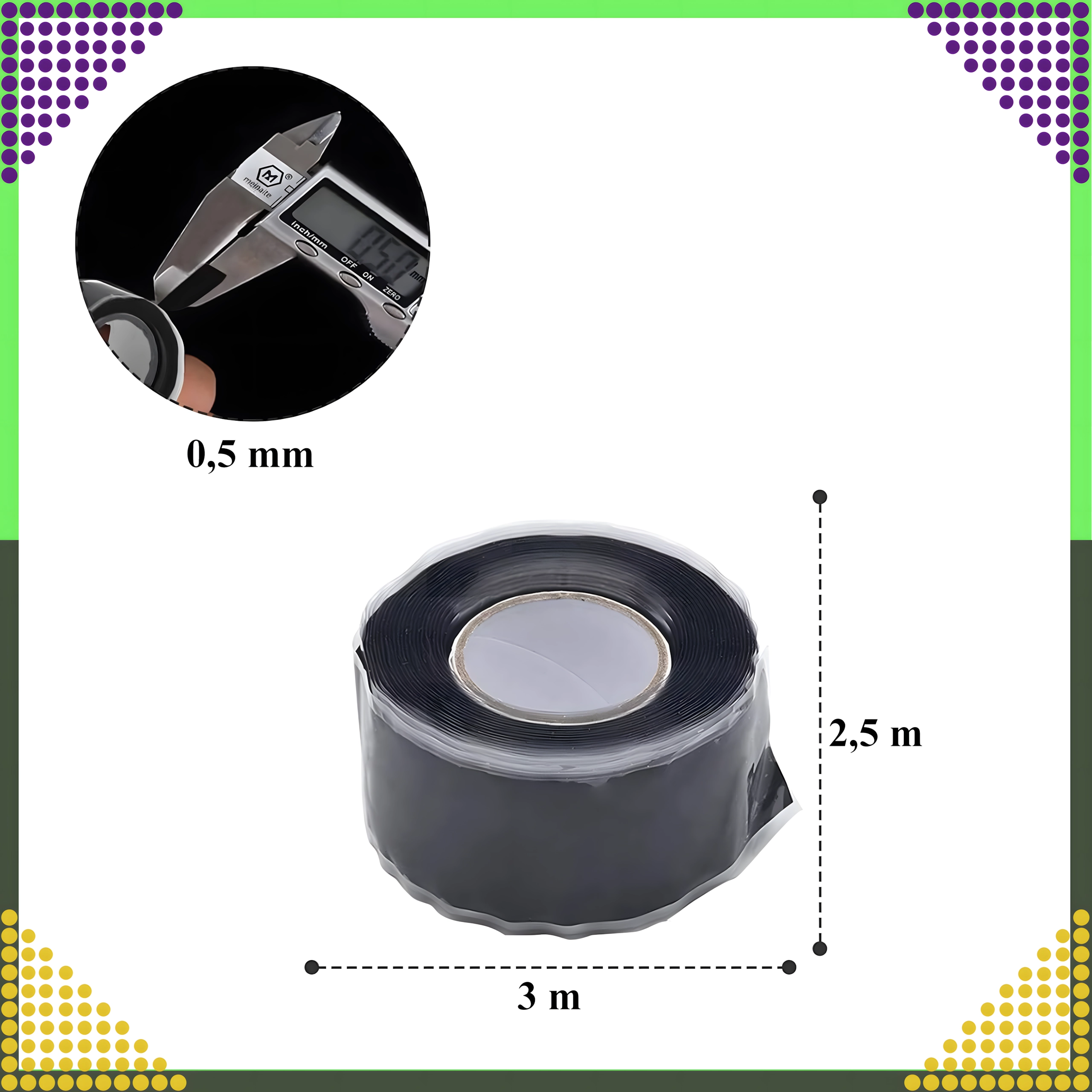 Táto samovulkanizačná (samofixačná) silikónová páska sa po natiahnutí a omotaní sama spojí do jednoliatej vrstvy, ktorá vytvorí vodotesný a vzduchotesný povrch. Je ideálna na rýchle zastavenie drobných únikov na rúrach, hadiciach a spojkách, rovnako ako na elektrickú izoláciu káblov.
