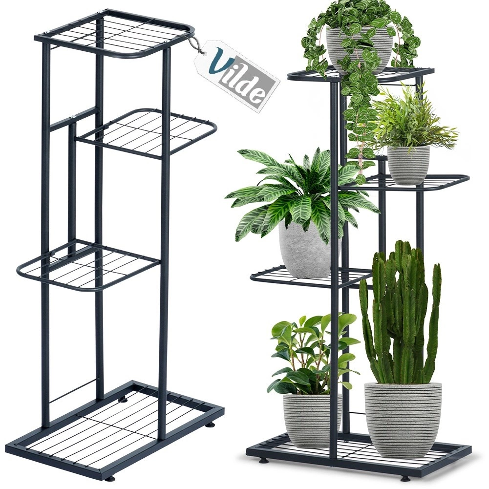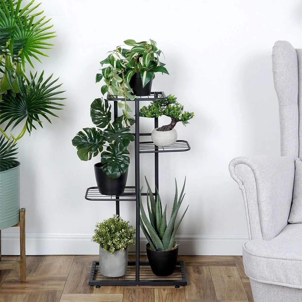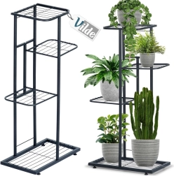 Kompaktný stojan s výškou 80 cm ponúka premyslené rozmery políc pre rôzne kvetináče a dekorácie. Spodná obdĺžniková polica 41 × 22 cm pojme dve stredné rastliny, ďalšie police 22,5 × 19 cm sú ideálne pre menšie kvetináče a horná plocha 24 × 21,5 cm zvýrazní vašu dominantnú solitérnu rastlinu či vázu. Otvorená mriežková konštrukcia zabezpečuje lepšie prúdenie vzduchu a odvod vlhkosti.