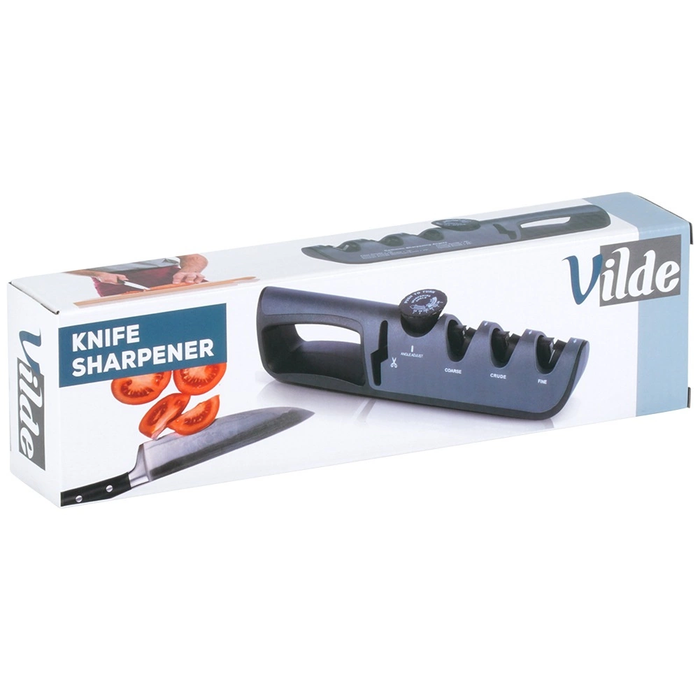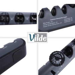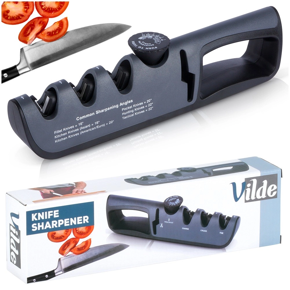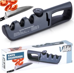Táto univerzálna ostrička nožov Vilde kombinuje pohodlie domáceho brúsenia s presnosťou nastaviteľných uhlov. Pomocou otočného voliča ľahko nastavíte správny uhol 14–24° podľa typu čepele – od kuchynských nožov a filetovacích čepelí až po EDC a lovecké nože. Vďaka protišmykovej základni a ergonomickej rukoväti so širokým úchopom je práca bezpečná a stabilná.
