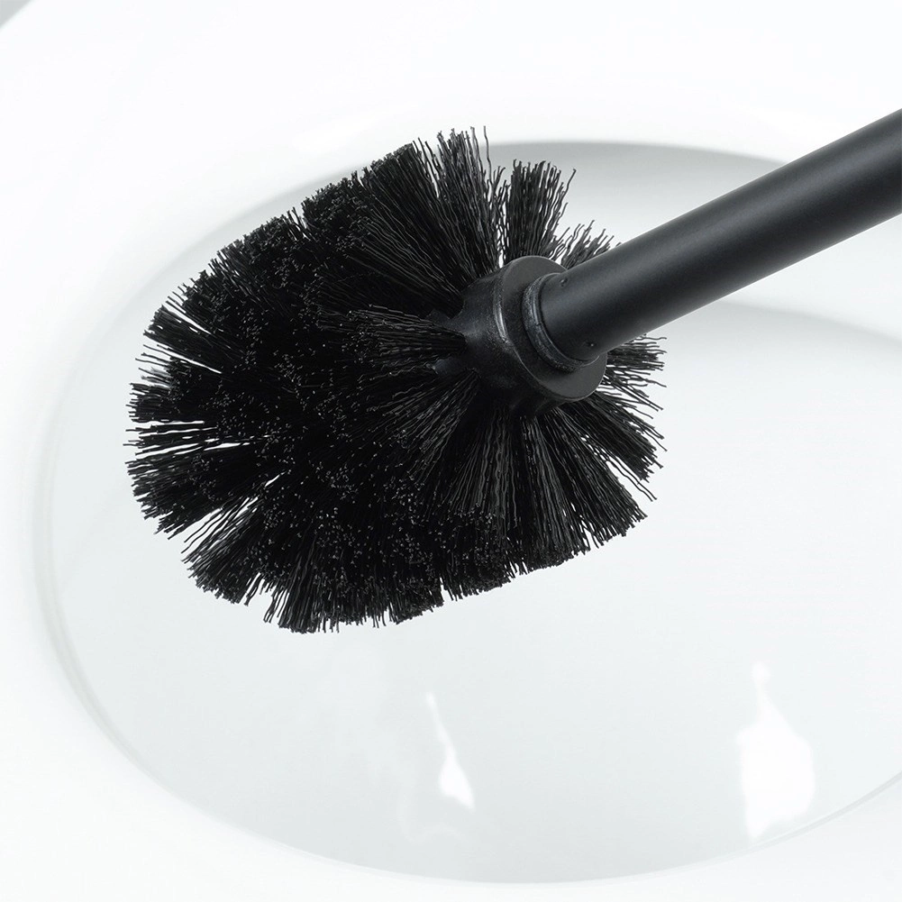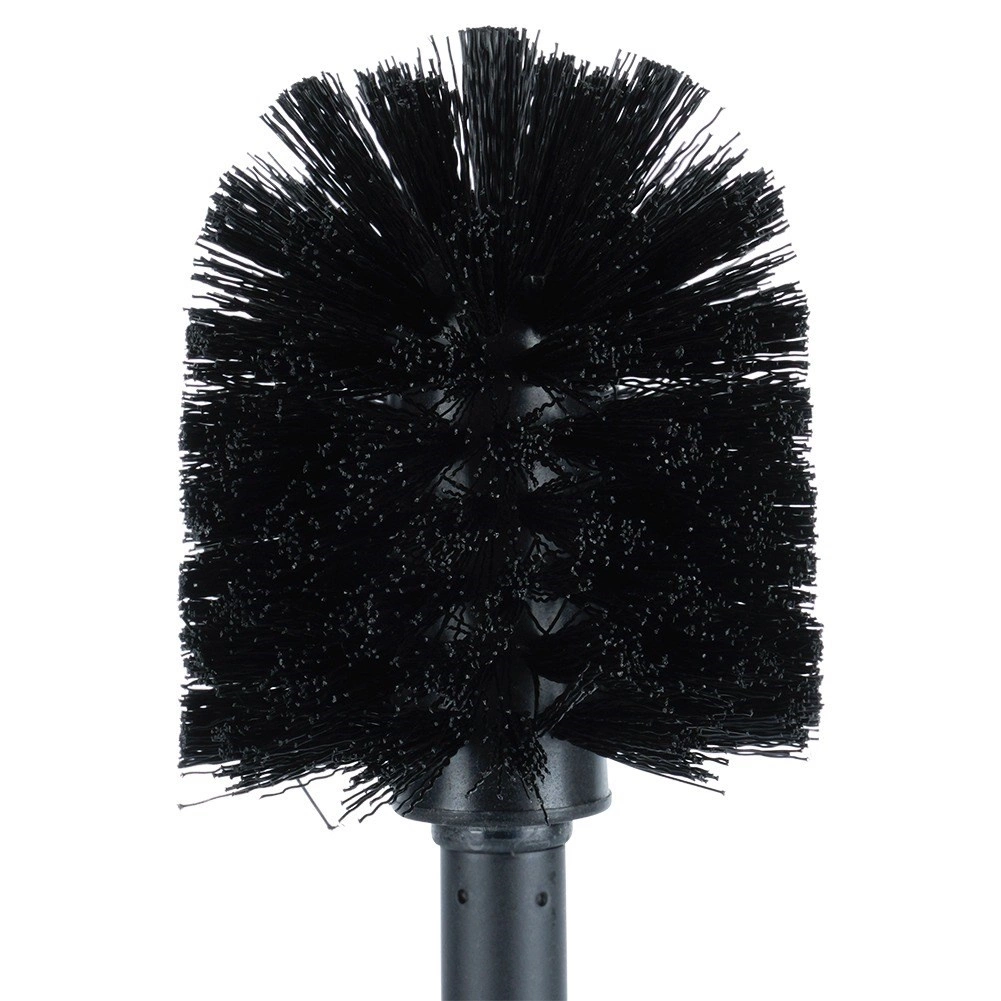 Udržujte toaletu hygienicky čistú s náhradnou kefkou, ktorá kombinuje odolnosť, ľahkú údržbu a moderný vzhľad. Čierne, husté štetiny z pevného plastu zabezpečujú dôkladné drhnutie aj pod okrajom misy a zároveň pôsobia stále čisto. Vďaka univerzálnym rozmerom ju ľahko vložíte do väčšiny bežných nádob na WC kefku.