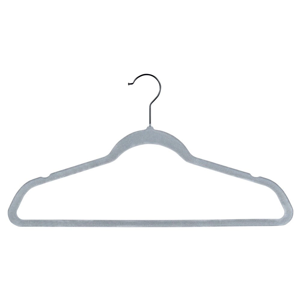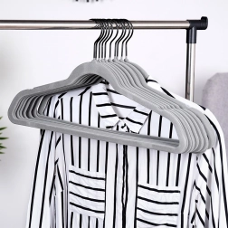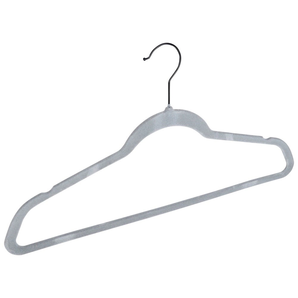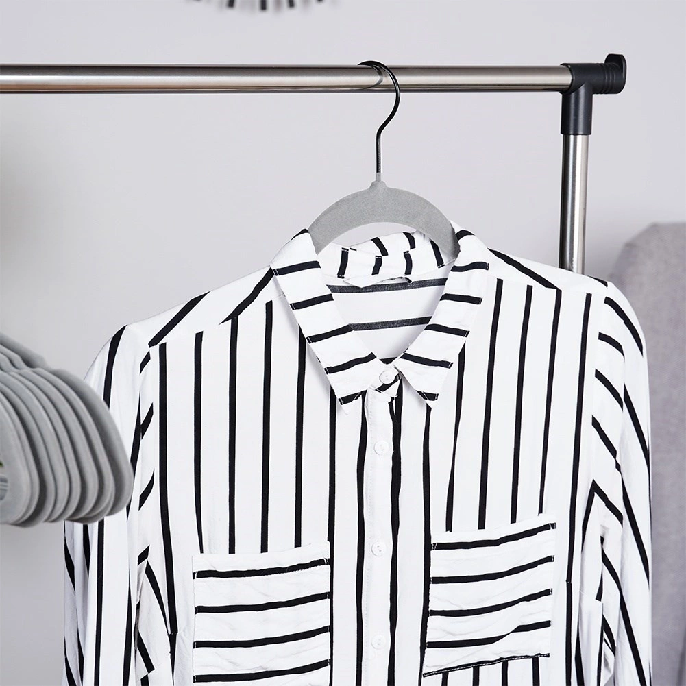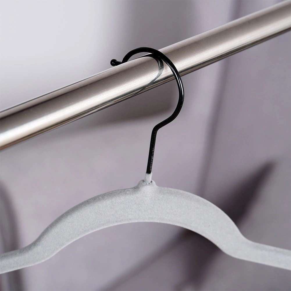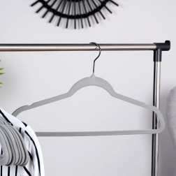 Udržte šatník dokonale prehľadný. Tenký profil vešiakov šetrí miesto a zamatový povrch chráni látky a bráni padaniu oblečenia. Otočný háčik uľahčuje zavesenie v akomkoľvek smere – ideálne do domácnosti aj predajní s módou.